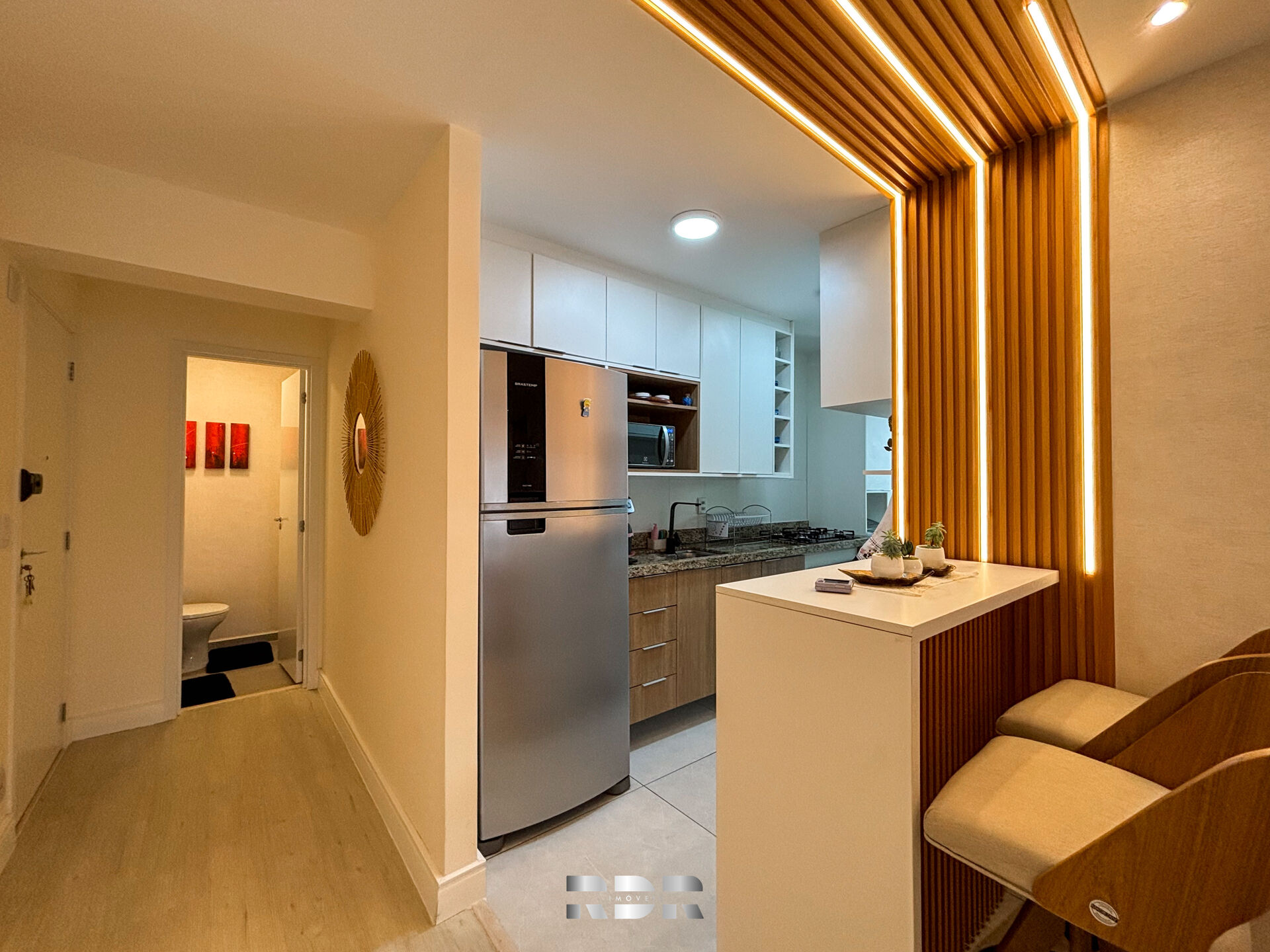 Apartamento com decoração moderna, layout diferenciado, vista livre e churrasqueira tradicional a carvão