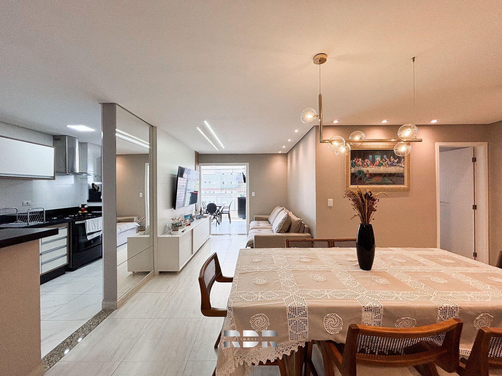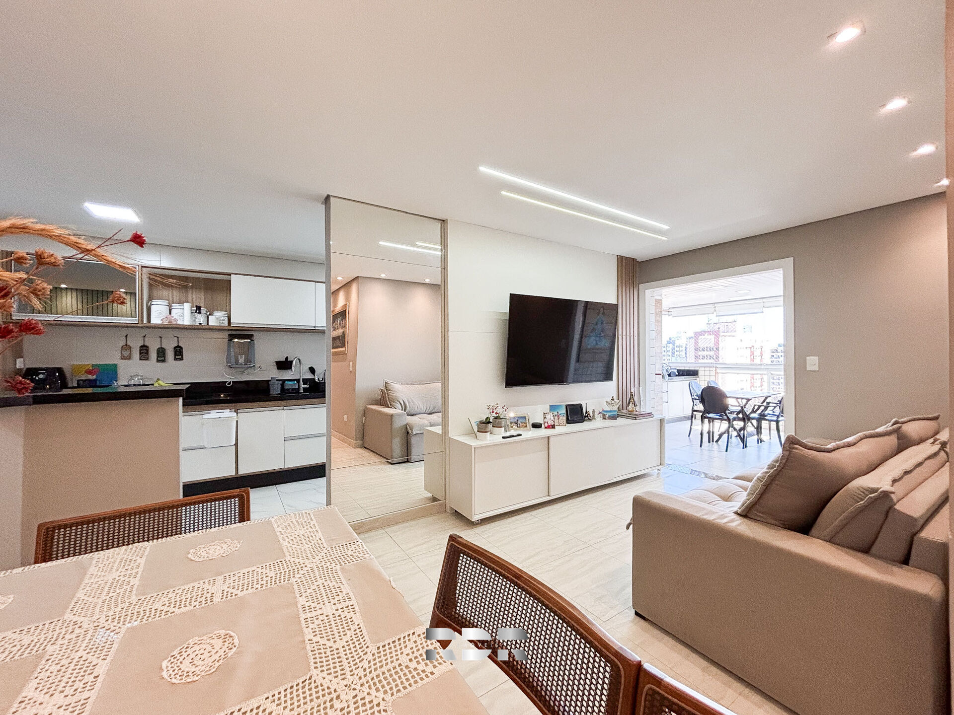Apartamento moderno sendo vendido semi-mobiliado com incríveis 102 m2, 2 suítes, ambientes amplos e integrados, cozinha americana com entrada independente e ampla varanda gourmet com churrasqueira a carvão e vista para o mar. Além disso, o apartamento conta com uma vaga de garagem.