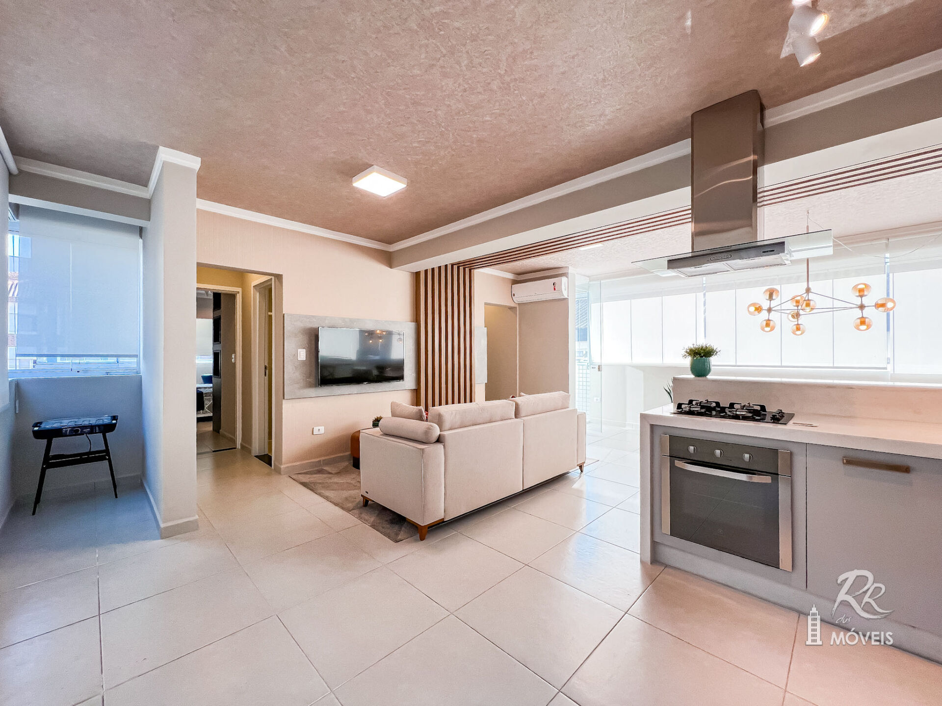 Apartamento com planta fantástica e moderna, integrando os ambientes, apresentando 94 metros quadrados, 2 dormitórios sendo 1 suíte, sala ampla integrada com a cozinha, área de serviço, banheiro social, área técnica para ar condicionado e 1 vaga de garagem.