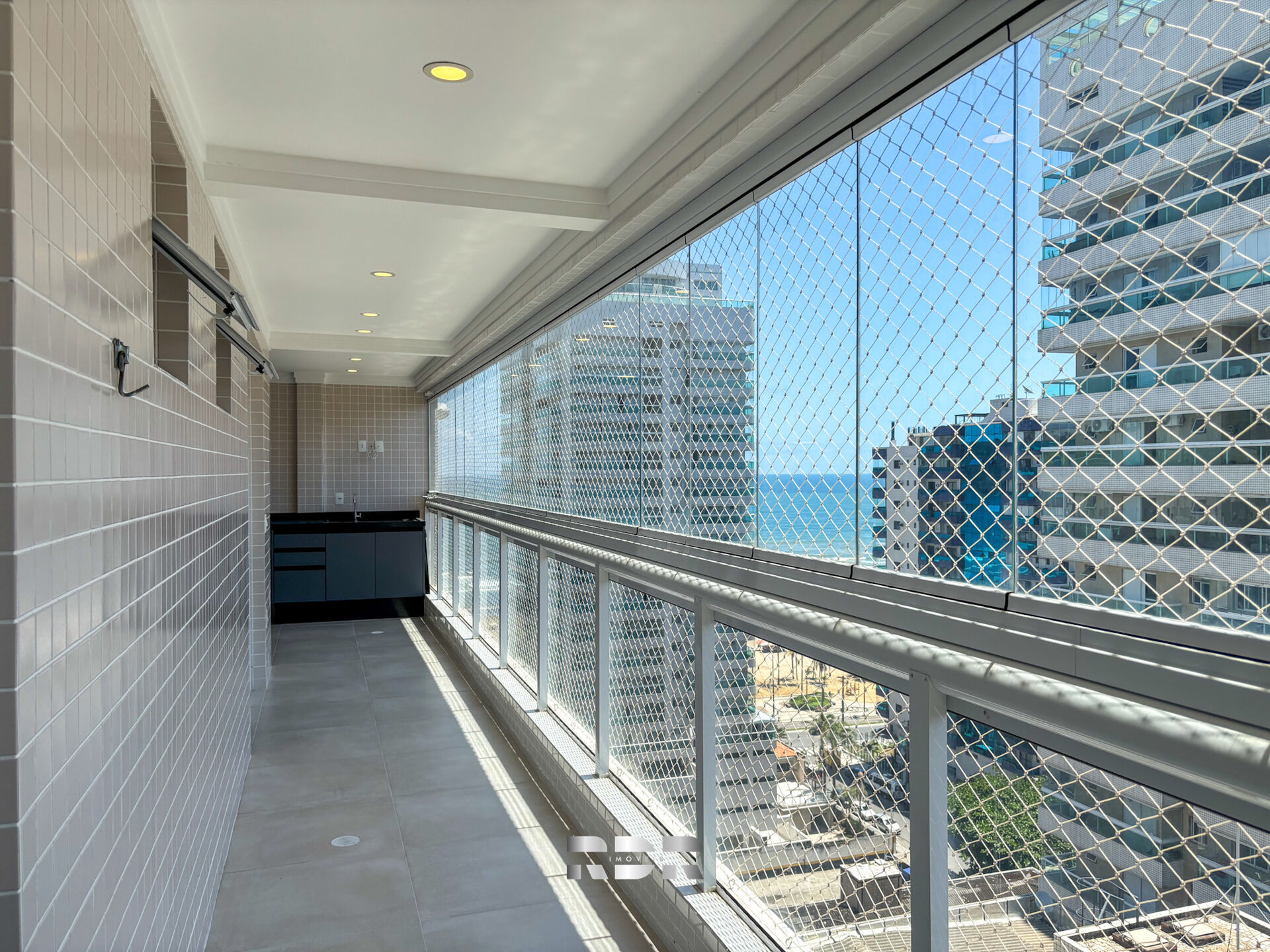 ✔️ Varanda gourmet envidraçada com vista para o mar — um verdadeiro convite para relaxar