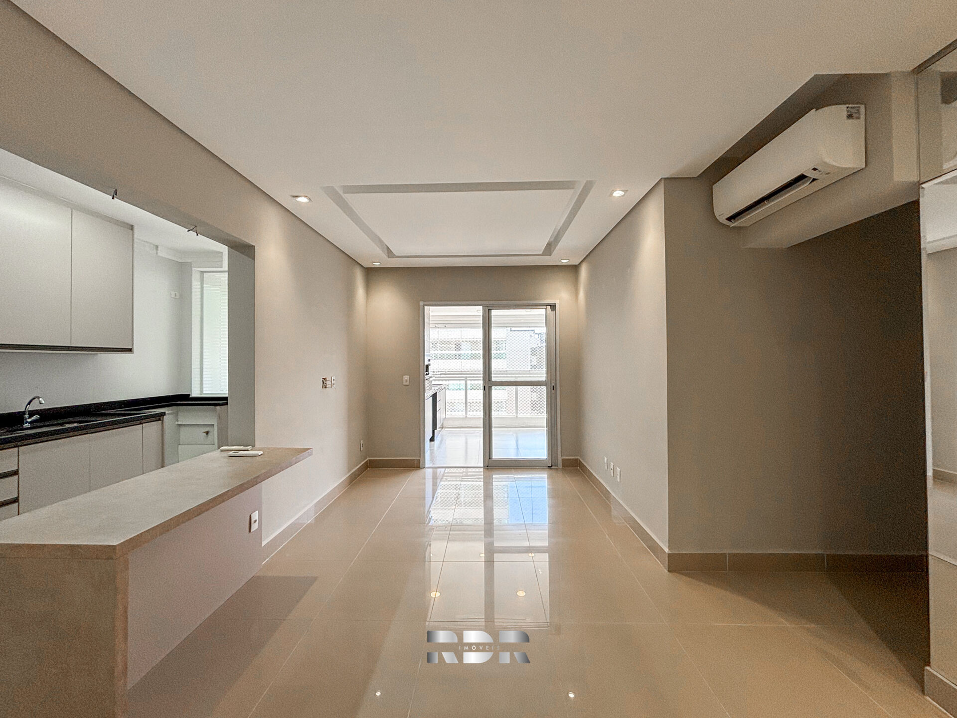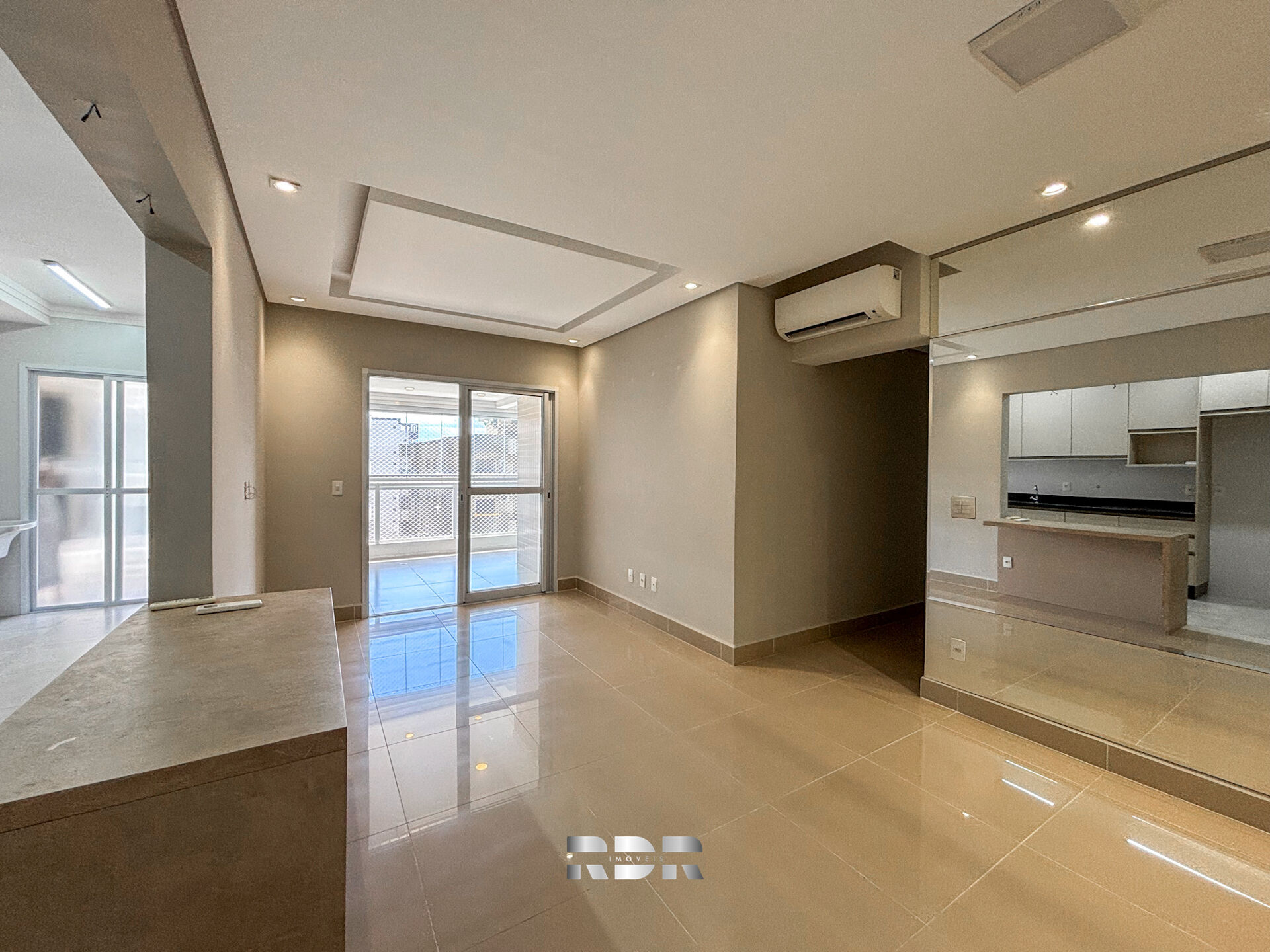 ✔️ Sala para dois ambientes com porcelanato e climatização