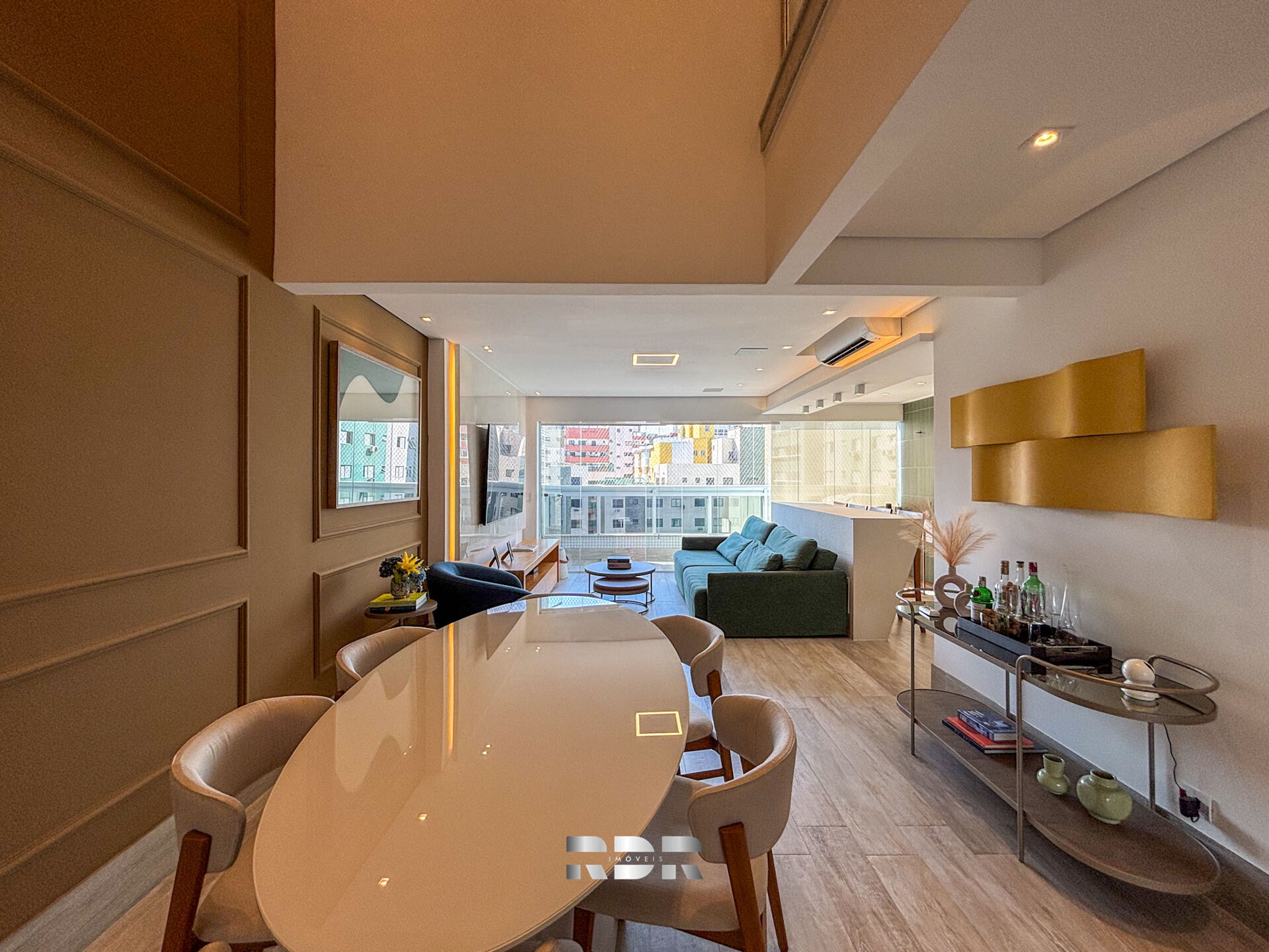 •Sala de TV integrada à cozinha, criando um ambiente amplo e acolhedor