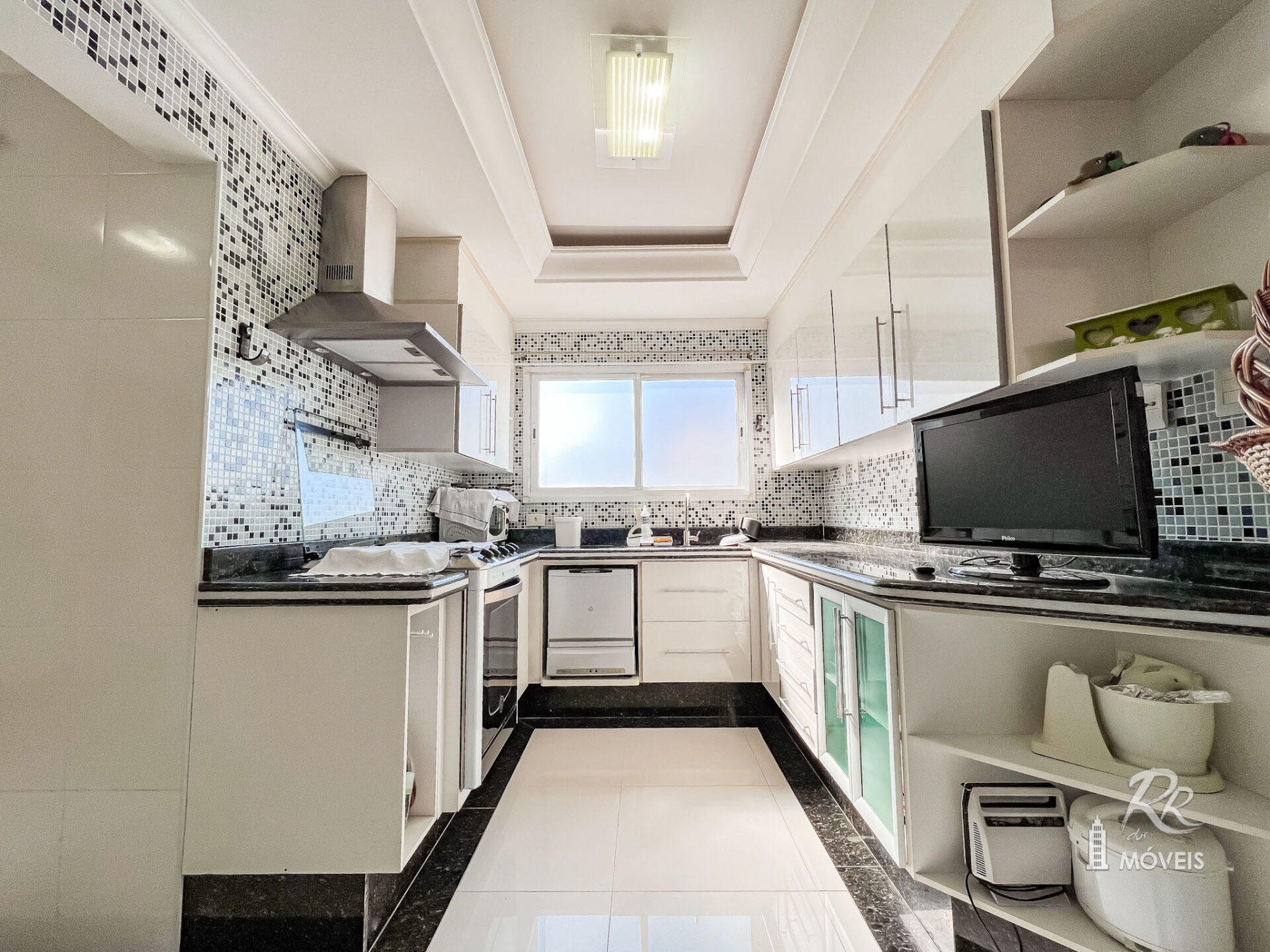 Este apartamento apresenta incríveis 170 m2 de área útil, 3 suítes sendo uma transformada para escritório (porém com fácil reversão) e a master com closet e hidro, ampla cozinha americana totalmente equipada e planejada, área de serviço com banheiro, sala para 3 ambientes com pisos em porcelanato e acabamento em gesso, ampla varanda gourmet de frente para o mar, envolvente e com envidraçamento, e 3 vagas privativas.