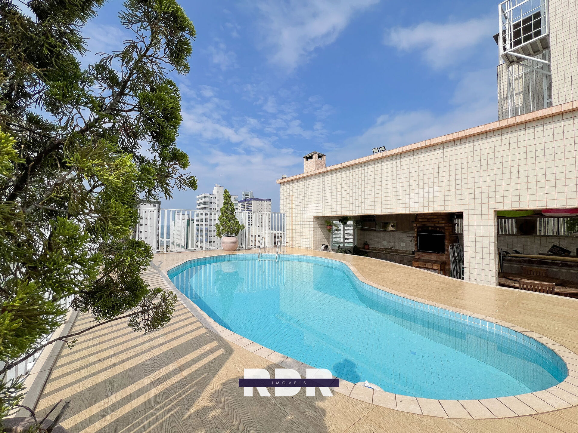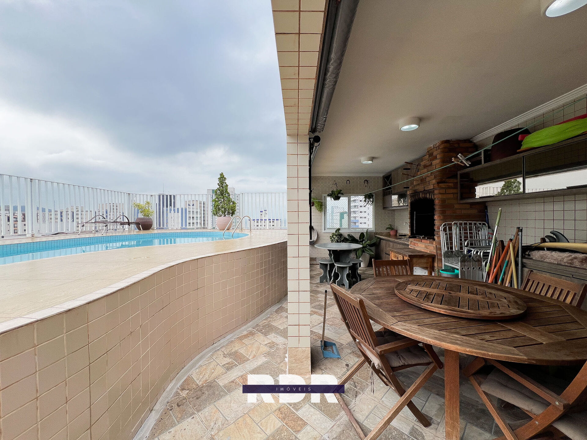- Área gourmet com piscina e vista para o mar